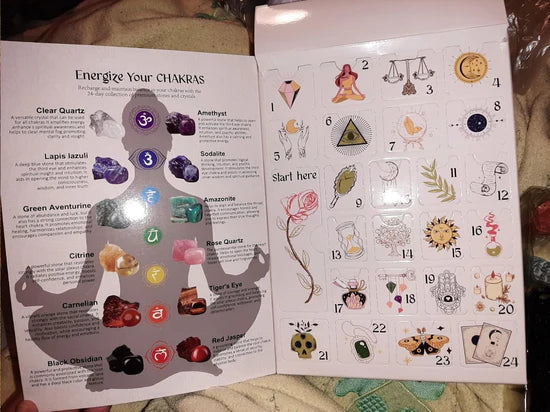 Each calendar features a diverse collection of 24 unique crystals, such as amethyst, rose quartz, and tiger's eye.Each crystal is handpicked for its distinctive healing properties and energetic vibrations, perfect for enhancing yourholiday spirit.