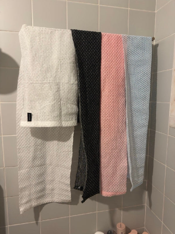 Even when wet, it maintains its elasticity, produces a rich lather effortlessly, rinses clean, and dries quickly. Every step feels simpler, cleaner, and more intentional.